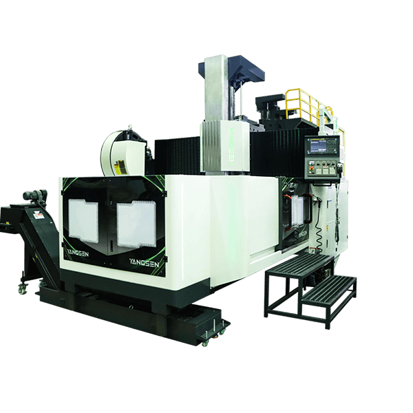 Double-column gantry structure with integrated table and columns provides strong rigidity and stable performance for large workpiece machining.
